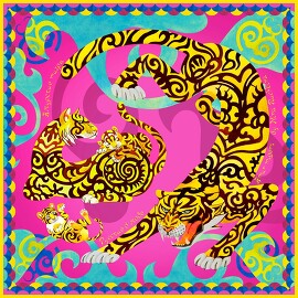 Платок Амурские тигры, 90x90 Nina Ruchkina
