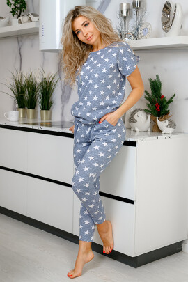 Очень замечательный костюм на лето,можно носить как по дому так и на выход Ткань хлопок очень приятна к телу, швы ровные Очень советую приобрести данную модель вы не пожалеете Размер идёт в размер
