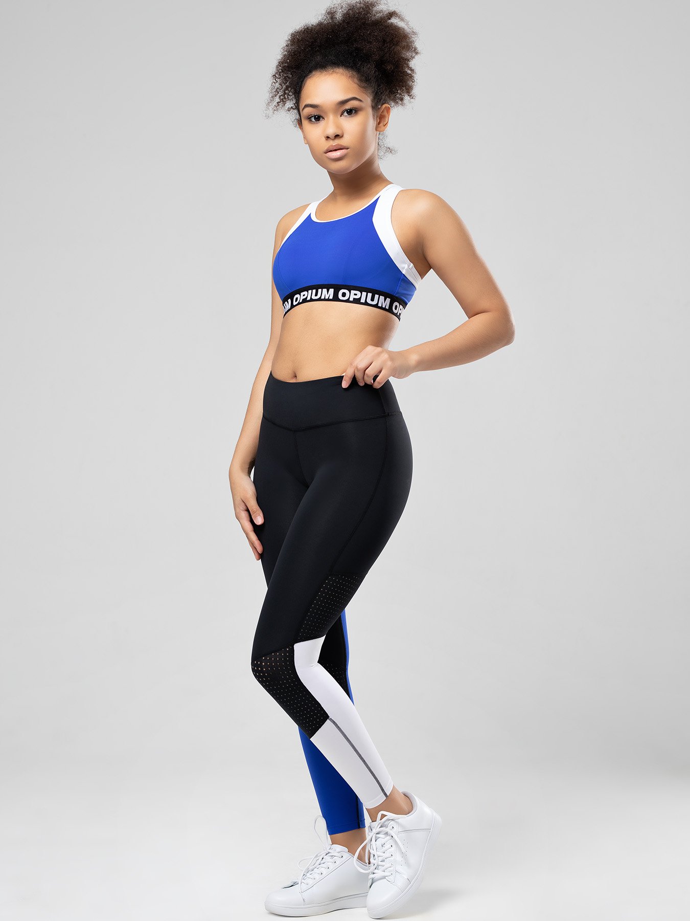 Женские легинсы для занятий спортом. Широкий двойной пояс поддерживает живот. Изнутри есть резиночка для дополнительной фиксации. Сзади на поясе кармашек на молнии для необходимых мелочей. Прочные плоские швы, эргономичный крой, интересные детали – все, что нужно для комфортного фитнеса. А яркие вставки синего и белого добавят позитивного настроения. Отличный комплект с топом-бра BF-19.