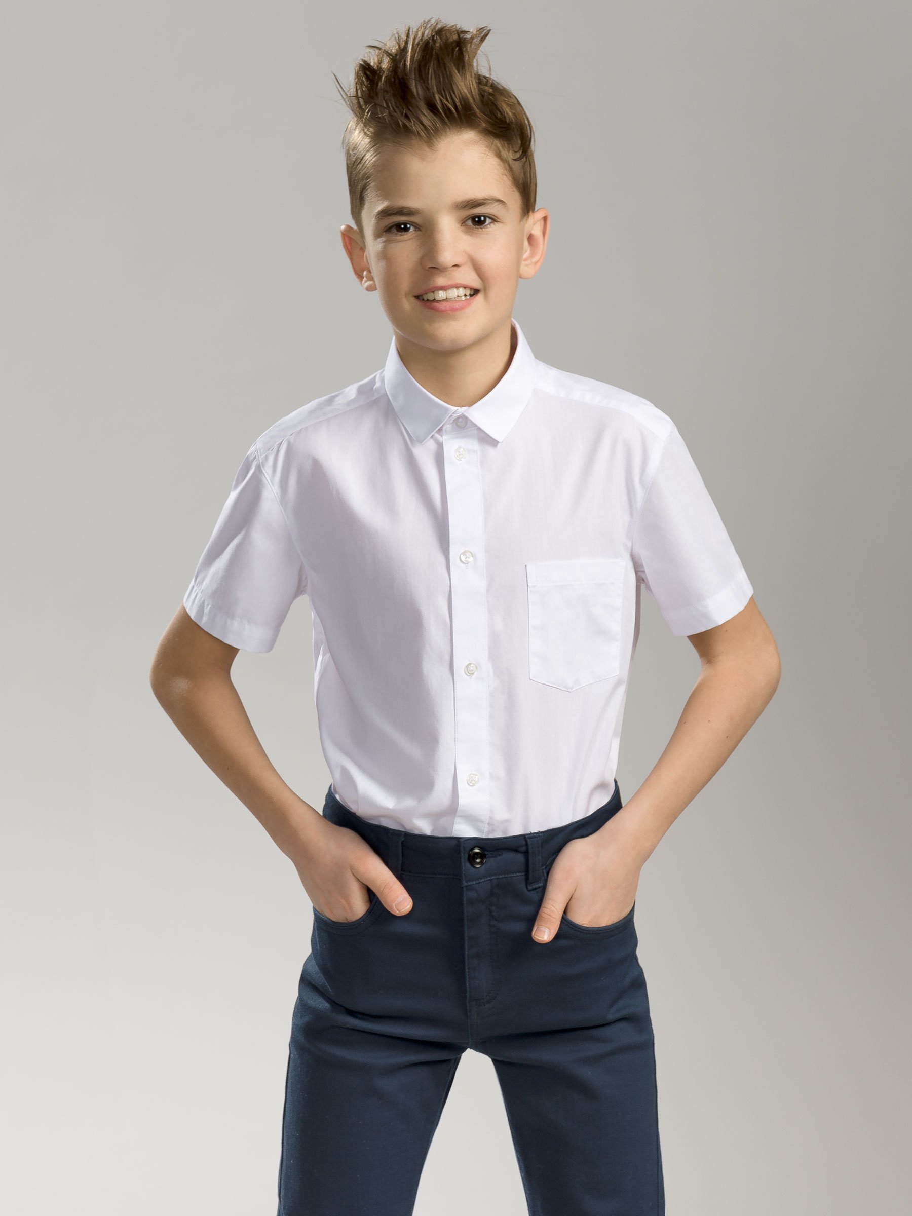 Сорочка с коротким рукавом для мальчиков. Классическая сорочка прямого силуэта с актуальным воротником типа Windsor. Слева нагрудный карман традиционной формы.