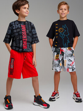 • Комплект: футболка, шорты из качественного эластичного и приятного на ощупь трикотажа джерси • футболка укороченная, без рукавов • высокое содержание хлопка 95% • благодаря наличию эластана в составе ткани, изделие держит форму и меньше мнется • принт сохраняет первоначальный вид даже после многочисленных стирок • эластичный пояс со шнурком