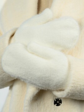 бежевые варежки оказались самыми белыми по сравнению с молочным палантином и молочной шапкой. Палантин самый темный - цвет топленого молока. Шапка однослойная без флиса, но достаточно теплая, при -10, -15 комфортно.