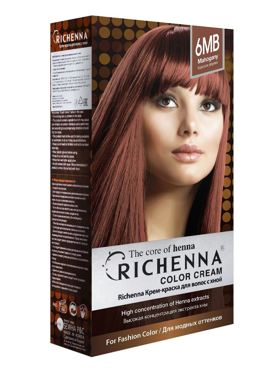 Крем-краска для волос с хной № 6MB (Mahogany), 60 мл. /60 мл. Richenna