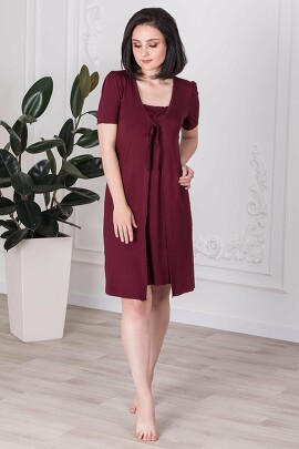 Ночная сорочка из 100% хлопка очень приятна к телу с полуприлегающим силуэтом, а так же отделкой в области груди из кружева, на подоле сорочки так же имеется кокетливый разрез с бантиком на левом боку.
