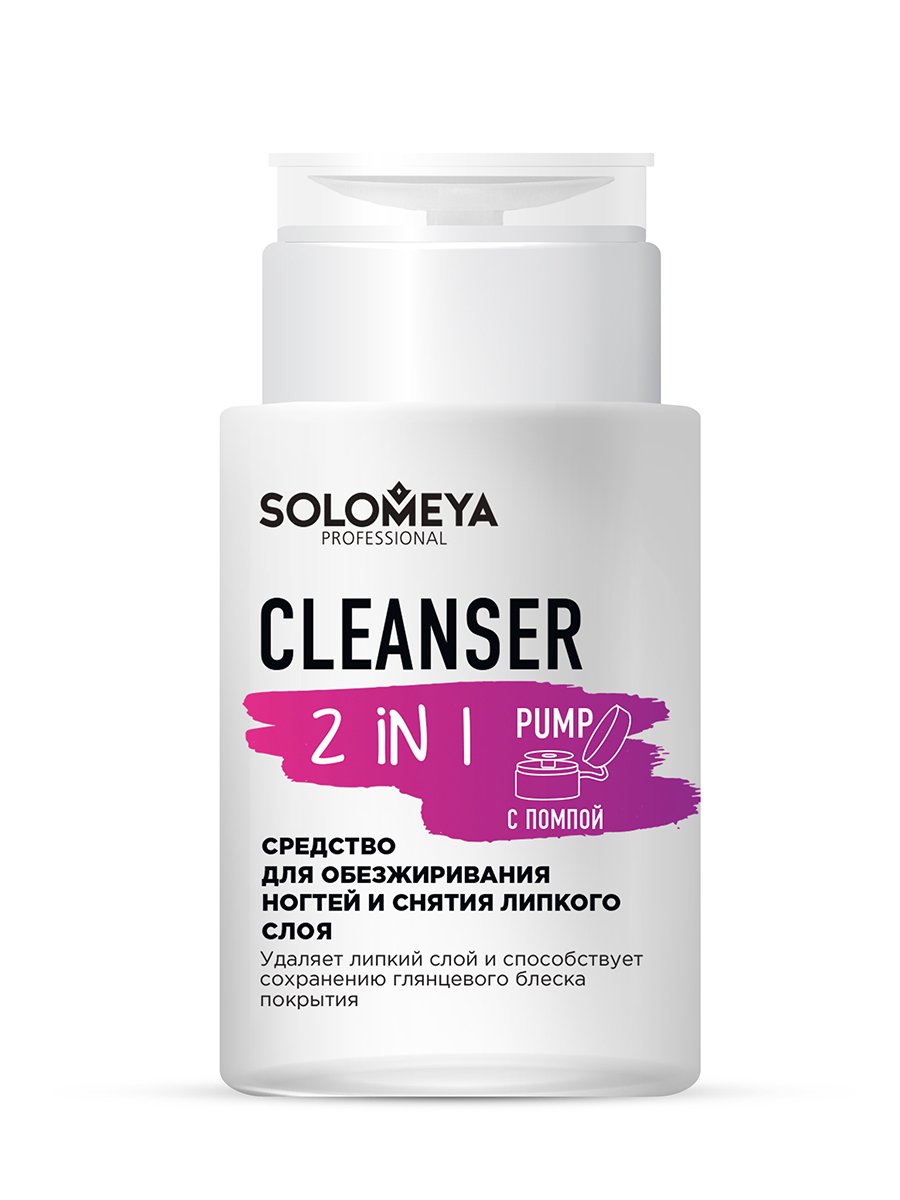 Средство 2 в 1 для обезж. ногтей и снятия липкого слоя (с помпой), 150 мл Solomeya