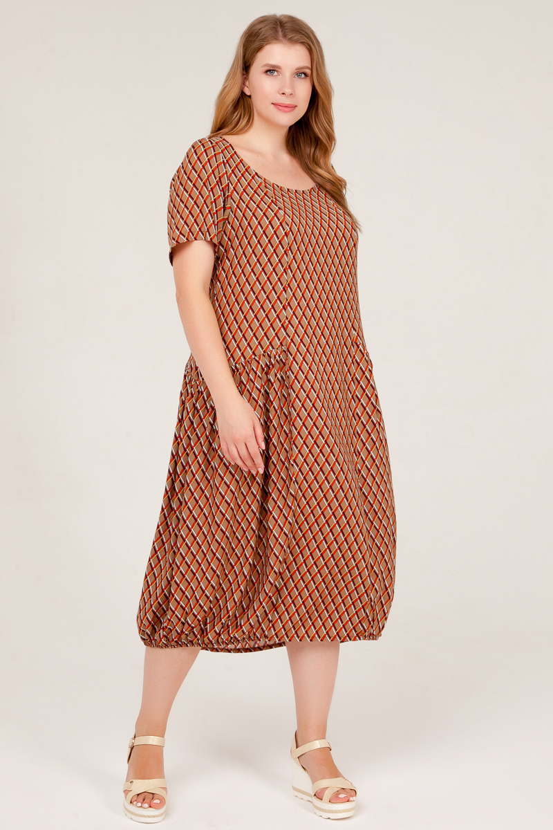 Стильное платье-миди для женщин Plus size. Удобное летнее платье с коротким рукавом и юбкой-тюльпаном. Эффектный принт придётся по душе поклонницам этнического стиля в одежде.