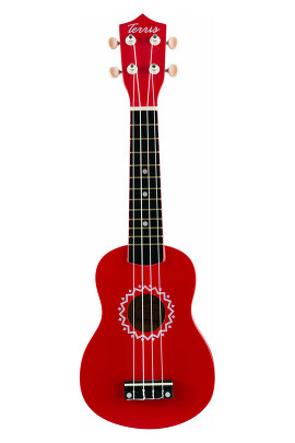 Укулеле, гитары и джембе в ярком красочном дизайне.