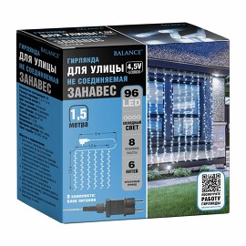 Электрогирлянда Занавес 96 холодных LED ламп, прозрачный провод, 6 нитей, 1,5х1,5 м, 8 режимов, с блоком питания Balance