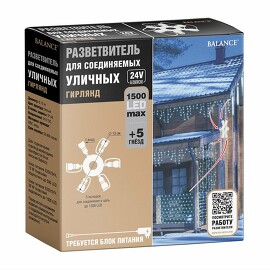 Электрогирлянда-конструктор Занавес 144 холодных (24 мигающих) LED ламп, 6 нитей, прозрачный провод, 1х3 м Balance