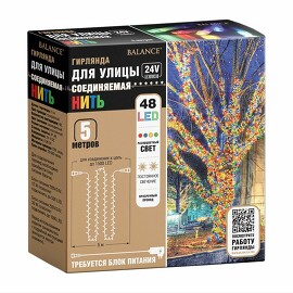 Электрогирлянда-конструктор Нить 48 разноцветных LED ламп, прозрачный провод, 5 м Balance