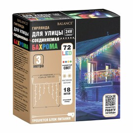 Электрогирлянда-конструктор Бахрома 72 разноцветных LED ламп, 18 нитей, прозрачный провод, 3х0,6 м Balance