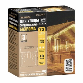 Электрогирлянда-конструктор Бахрома 72 теплых LED ламп, 18 нитей прозрачный провод, 3х0,6 м Balance