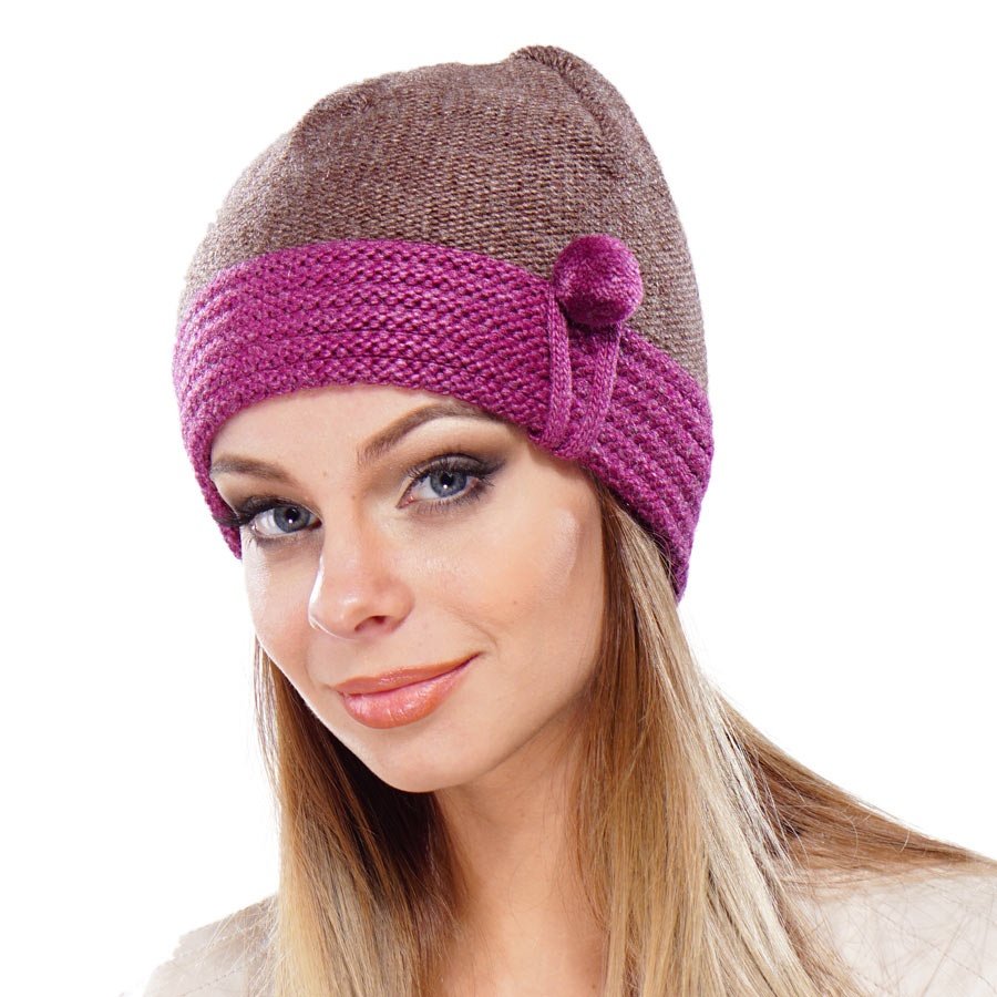 Двухцветная женская шапка интересного дизайна, нижняя часть декорирована небольшой деталью. Шапка изготовлена из шерсти и акрила, такой состав делает её очень мягкой и приятной к коже, шапочка плотно облегает голову, поэтому Вам всегда будет тепло и комфортно, а дизайн позволяет гармонично дополнять как повседневный так и праздничный образ.