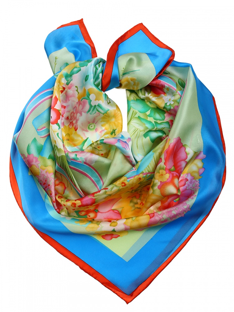 Прекрасный шелковый платок с очаровательным цветочным принтом, яркие и насыщенные тона освежат Ваш образ.