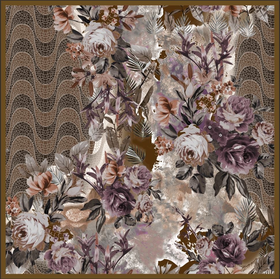 Платок VENERA коричневого цвета 90х90см. с эксклюзивным растительным принтом, изготовлен из полиэстера приятного к телу материала, хорошо драпируется, будет хорошим дополнением вашего образа.