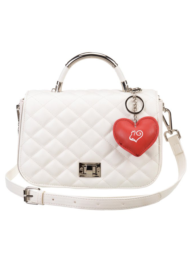 Романтичная сумочка кросс-боди Vera Victoria Vito из эко-кожи с дугообразной металлической ручкой. Изделие украшает стёжка в "ромб" и съёмный брелок "сердце". Закрывается на клапан с замком. Внутри два отделения, разделительный карман на молнии, карман для документов и кармашки для мелочей. В комплекте плечевой ремень на карабинах. Модель легко дополнит вечерний ансамбль!