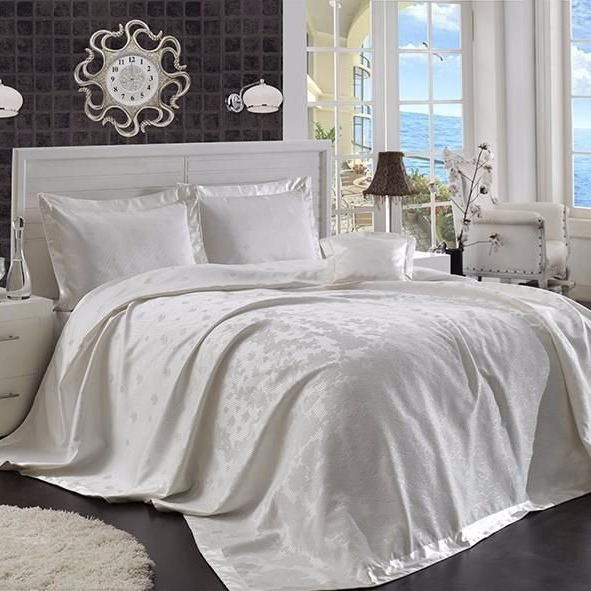 Покрывало с наволочками First Choice Sonil Eftelya Krem из шенилла изыскано сочетает в себе мягкий велюр, шелковый сатин и роскошный кружевной декор. Очень важным достоинством покрывала является большой размер, что позволяет ему элегантно ниспадать по краям кровати. В комплект входит три декоративные наволочки: 50/70 см 2 шт. из велюра с кантом и 40/40 гладкая из сатина.Размер покрывала 240/260 см. Шенилл — плотный износостойкий материал с приятной бархатистой структурой на ощупь напоминает вельвет. Покрывало First Choice выполнено из жаккардовой ткани со сложным рисунком плетения. Ткань износостойкая и долговечная. С таким покрывалом любая кровать будет выглядеть роскошно!