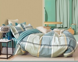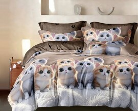 Комплекты постельного белья из сатина, покрывала с принтами, простыни на резинке.