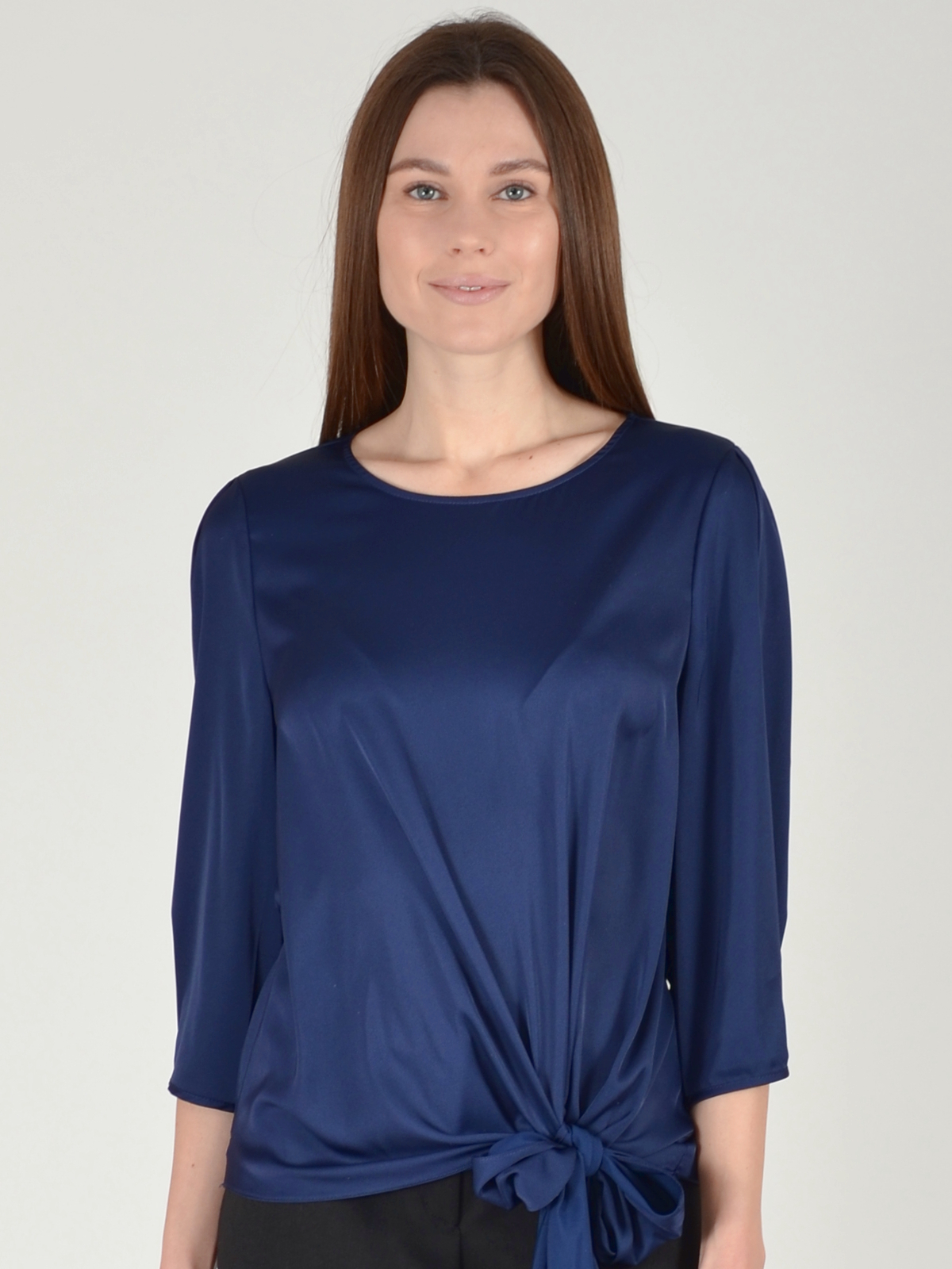 Блузка прямого силуэта. Широкий рукав 3/4.Низ полочки переходит в декоративный бант.