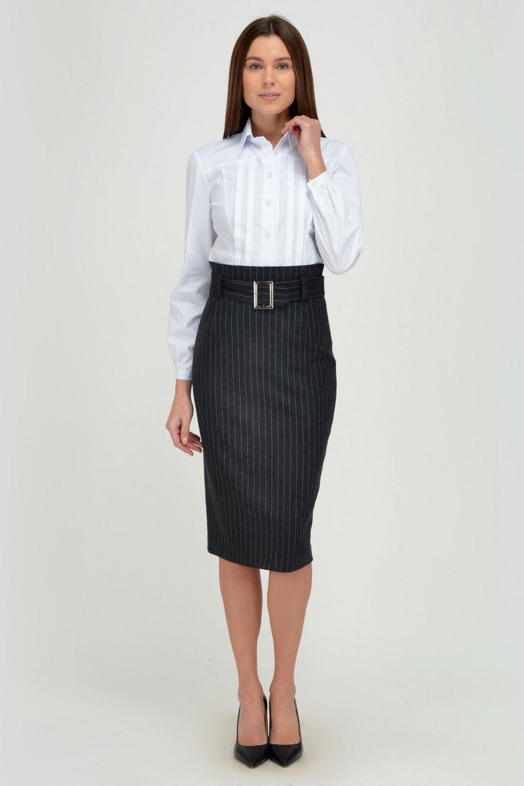 Юбка с завышенной линией талии облегающего силуэта. Сзади шлица. Изделие на подкладке. Юбка дополнена ремнем из ткани.