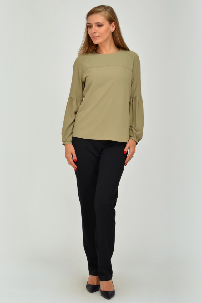 Блузка прямого силуэта. Рукав реглан с декоративным воланом на манжете. Изделие без подкладки.