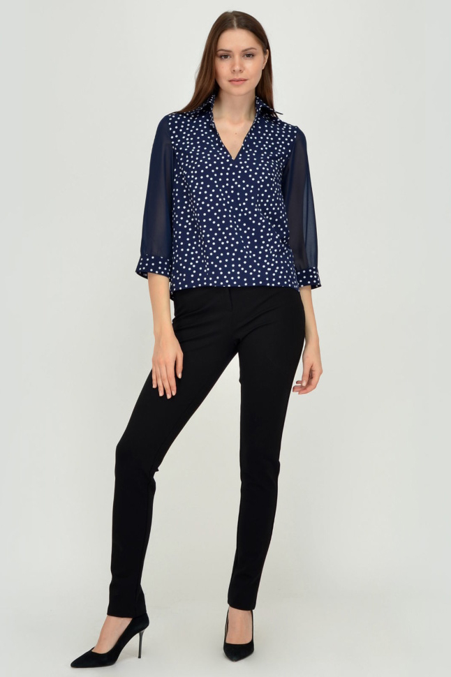 Блузка женская прямого силуэта. Воротник отложной.Рукав 3/4 на манжете.На спинке декоративная складка.Низ фигурный.