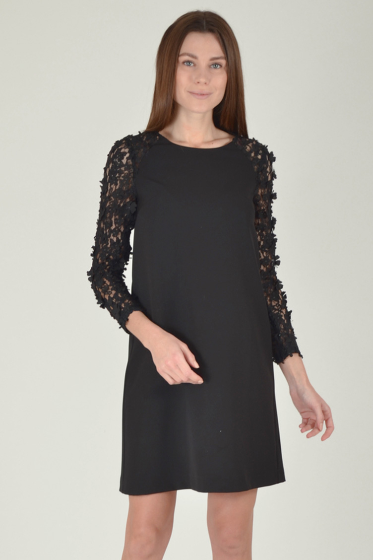 Платье А-образного силуэта.Рукав длинный из гипюра. Изделие без подкладки.