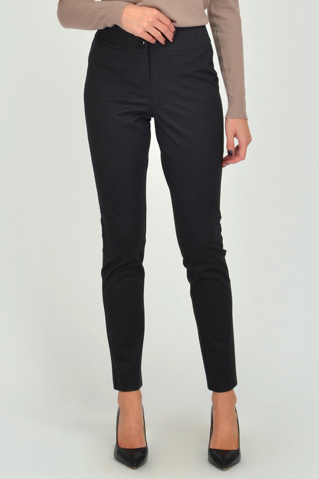 Брюки зауженные к низу на притачном поясе.