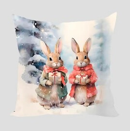 Подушка декоративная Зайки и рождественские подарки Новый год 40х40 см Zaberite