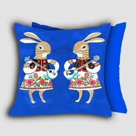 Подушка декоративная для сада и улицы Зайки в русском стиле 45х45 см рисунок с двух сторон Zaberite