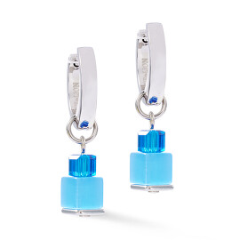 Серьги со съемными керамическими подвесками, родированные. Голубые сердечки Little Mystery